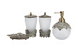 Дозатор для жидкого мыла Heather изготовлен в виде круглого стеклянного флакона, верхняя часть которого обрамлена кружевной металлической вязью, инкрустированной стеклянными камешками. Благодаря изящному дизайну, удобству и легкости в использовании, является незаменимым аксессуаром для любого стиля ванной комнаты. Изготовлена из совершенно безопасных натуральных материалов. Непременно приобретите его вместе с другими предметами коллекции Heather для вашей ванной комнаты. Такой набор, несомненно, станет и шикарным подарком.