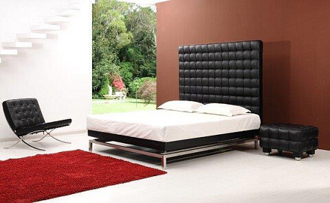 Кровать двуспальная с кожаным изголовьем 180х200 коричневая Boss Bed
