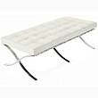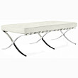Банкетка Barcelona разработана известным архитектором Людвиг Мис ван дер Роэ в 1929 году как дополнение к креслу Barcelona. Она создавалась для того, чтобы в итоге получить подобие шезлонга и сделать сидение на кресле еще более удобным. Подушка  обтянута высококачественной натуральной кожей Премиум белого цвета, к каркасу крепится ремнями. Основание оттоманки — стальная рама на двух ножках из нержавеющей стали, полированная вручную.