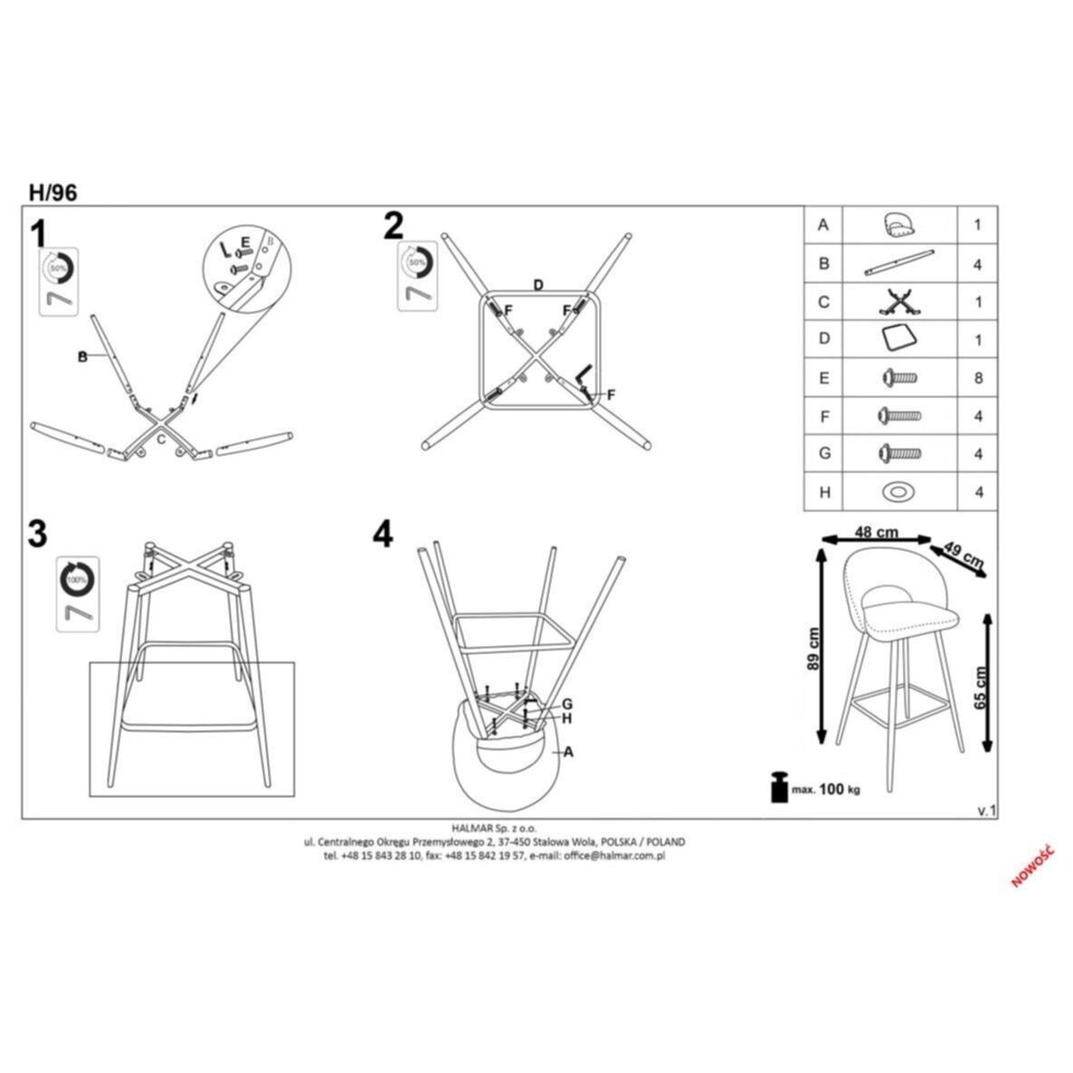 Габариты (Ш × В × Г) 48 x 89 x 49 см