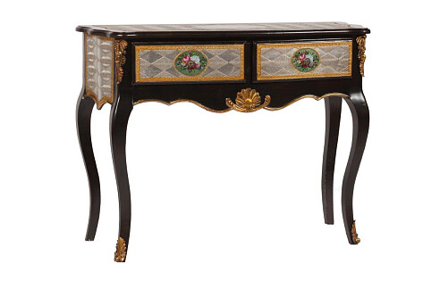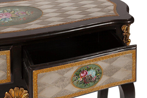 Консоль с ящиками темно-коричневая резная с золотым декором Corsica
