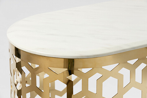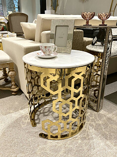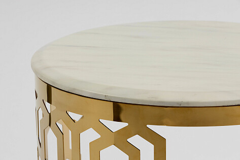 Кофейный столик круглый с белой мраморной столешницей 50 см "Золотые соты"