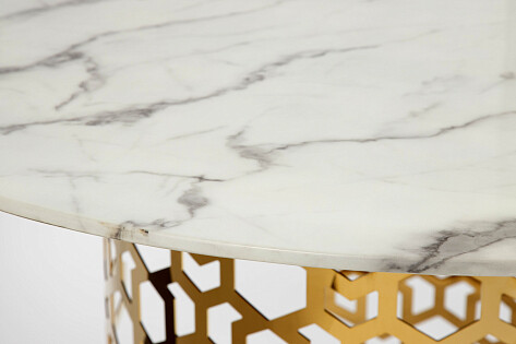 Обеденный стол круглый 130 см со столешницей из искусственного мрамора и основанием золото