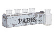 Набор из пяти стеклянных бутылок оформлен в искусственно состаренный деревянный ящик с надписью Paris. Этот дизайн подчеркивает красоту добротно сделанной вещи, гармонично впишется в интерьер кухни в стиле кантри. Размер ящика: 37*8*14. Размер бутылки: 7*7*12.