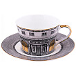 Чайна пара Killy выполнена из качественного фарфора. Блюдце диаметром 9 см и чашка белого цвета орнаментом и золотой каймой.