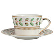 Желуди, дубовые листья, спокойная расцветка и золотая кайма — все выдаёт тонкий вкус владельца чайной пары Flober. От расцветки веет теплом, спокойствием, а тонкий костяной фарфор безупречно вписывается в любую сервировку чаепития. Современная выпечка или класическое печенье — все будет аппетитно смотреться на блюдце с таким растительным орнаментом. в нашем интернет-магазине также представлены комплекты тарелок из коллекции Flober с таким же орнаментом.