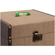 Декоративный чемодан для хранения Pompadour изготовлен из МДФ и ткани серого цвета с текстурой, по периметру окантован тканью коричневого цвета. Чемодан изящно декорирован оригинальным замочком и прозрачной зелёной ручкой. Данный аксессуар можно использовать, в зависимости от вашей фантазии, для хранения многих предметов, или как декор вашего интерьера. Возможно, вам захочется его купить.
