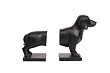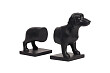 Держатель для книг изготовлен из полирезина в виде разделенной надвое чёрной таксы. При помощи этой поставки-держателя книжную полку можно оформить вполне неординарно. Скульптура таксы достаточно правдиво детализирована и узнаваема. Набор получился эстетичный и применим по назначению. Идеальный элемент декора и подарок для любителя собак.