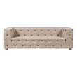 Прямоугольный уютный диван Soho Tufted имеет каркас из натуральной берёзы на низких дубовых ножках, обит прочной льняной тканью бежевого цвета с применением каретной стяжки и глубоко посаженных мебельных пуговиц в цвет обивки на внутренних поверхностях сиденья и спинки. Высокие подлокотники, расположенные под прямым углом к сиденью и переходящие в монолитную спинку, с фронтальной части по центру также оформлены декоративным мебельным швом и мебельными пуговицами. Его пышный объем создан благодаря прослойке из пенополиуретана (поролона). Купите диван Soho Tufted в свой дом — это прекрасный вариант для полноценного отдыха!