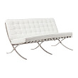 Предлагаем вашему вниманию: Диван Barcelona двухместный экокожа прямой белый. Роскошная реплика стильного и исключительно удобного дивана Barcelona от известного архитектора Людвиг Мис ван дер Роэ Ludwig Mies Van der Rohe) — надежный и долговечный вариант с легким металлическим каркасом на ножках из нержавеющей стали, мягким сиденьем из мебельного поролона, обивка — экокожа белого цвета со стильной стежкой-капитоне. Ключевыми моментами дизайна является облегченная конструкция ножек и стеганое сидение, сделанное из экокожи — это придает дивану действительно шикарный вид.