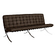 Предлагаем вашему вниманию: Диван Barcelona двухместный экокожа прямой коричневый. Роскошная реплика стильного и исключительно удобного дивана Barcelona от известного архитектора Людвиг Мис ван дер Роэ Ludwig Mies Van der Rohe) — надежный и долговечный вариант с легким металлическим каркасом на ножках из нержавеющей стали, мягким сиденьем из мебельного поролона, обивка — экокожа коричневого цвета со стильной стежкой-капитоне. Ключевыми моментами дизайна является облегченная конструкция ножек и стеганое сидение, сделанное из экокожи — это придает дивану действительно шикарный вид.