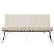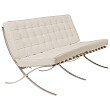 Предлагаем вашему вниманию: Диван Barcelona двухместный кожа премиум прямой молочный. Роскошная реплика стильного и исключительно удобного дивана Barcelona от известного архитектора Людвиг Мис ван дер Роэ Ludwig Mies Van der Rohe) — надежный и долговечный вариант с легким металлическим каркасом на ножках из нержавеющей стали, мягким сиденьем из мебельного поролона, обивка — натуральная кожа молочного цвета со стильной стежкой-капитоне. Ключевыми моментами дизайна является облегченная конструкция ножек и стеганое сидение, сделанное из итальянской натуральной кожи Премиум — это придает дивану действительно шикарный вид.