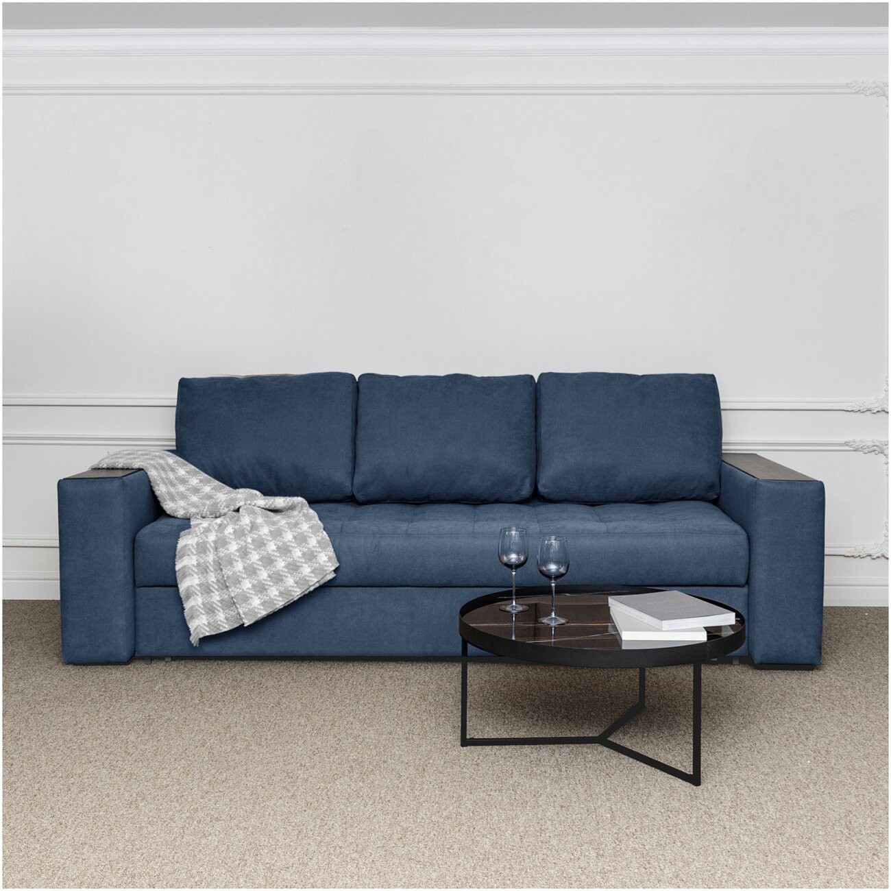 Наши дизайнеры и проектировщики удивляют нас своими работами! Представляем вашему вниманию Диван прямой раскладной трехместный синий "Бостон", который вы можете купить на нашем сайте. Данная модель обязательно придется по вкусу любому ценителю современных дизайнерских интерьеров.