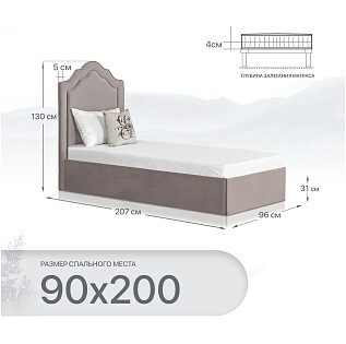 Кровать односпальная с подъемным механизмом и ящиком для белья 90х200 мокко Одри
