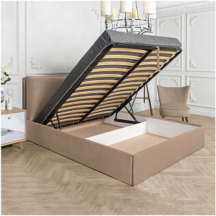 Кровать двуспальная с подъемным механизмом и ящиком для белья 160х200 мокко Luna