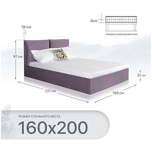 Кровать двуспальная с подъемным механизмом и ящиком для белья 160х200 капри "Альба"