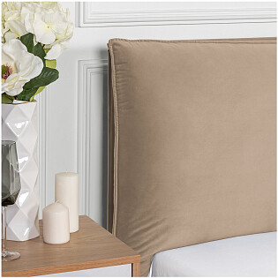 Кровать двуспальная 180х200 без гвоздиков песочная из велюра Hugo