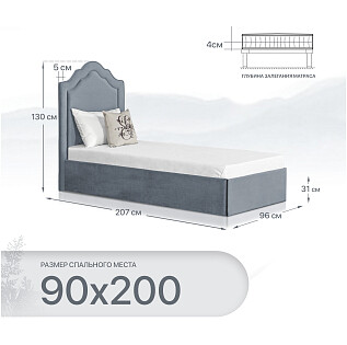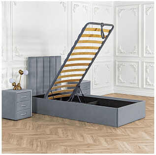 Кровать односпальная с подъемным механизмом и ящиком для белья 90х200 дымчато-голубая Мелисса