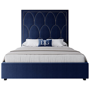 Кровать евро с подъемным механизмом и ящиком для белья 200х200 темно-синяя Мелисса