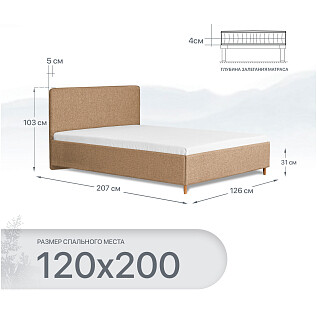Кровать полутораспальная с закладными основаниями 140х200 капри "Сканди"