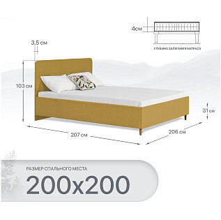 Кровать евро с ортопедическим основанием 200х200 светло-горчичный "Сканди"