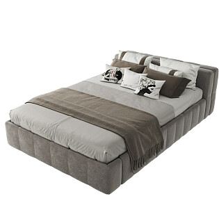 Кровать Husk двуспальная 180х200 бежево-серая (бокс спринг)