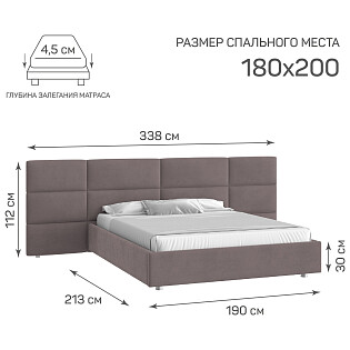 Кровать двуспальная с мягким изголовьем 180х200 Jackie King