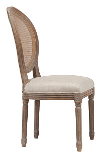 Стул обеденный с медальонной спинкой кремовый лен Vintage French Round Cane Back