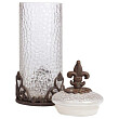Декоративная банка среднего размера для хранения изготовлена с использованием художественного литья с нанесёнием рельефного рисунка, помещена в подставку, декорированную металлической вязью. Удобная ручка на крышке в виде геральдической лилии выгодно дополняет общий дизайн банки. Приобретите набор декоративных банок из коллекции Nevada — и он станет ещё одним украшением вашего интерьера.