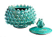 Оригинальная ёмкость для хранения «Артишок» может использоваться как эксклюзивная шкатулка для мелочей и домашних аксессуаров. Шкатулка выполнена из керамики, покрытой бирюзовой глазурью, и напоминает одновременно изысканный плод артишока и роскошную корону.