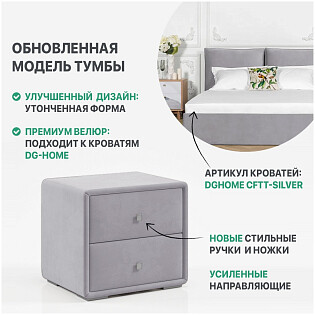 Прикроватная тумбочка с двумя ящиками дымчатая Эстетика Cardif
