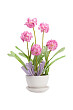 Декоративный цветок Eva изготовлен из шелка и керамики, с применением насыщенной цветовой гаммы. Композиция состоит из шелкового розового цветка с зелёными листьями и керамического белого горшка с поддоном. Рассчитан на длительный срок использования. Стильный элемент декора подойдёт к любому стилю интерьера.