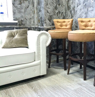 Стул мягкий круглый с низкой спинкой бежевый лен Pierre