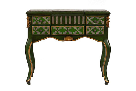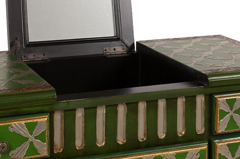 Туалетный столик с зеркалом и ящиками, резной зеленый с золотом La Rochelle