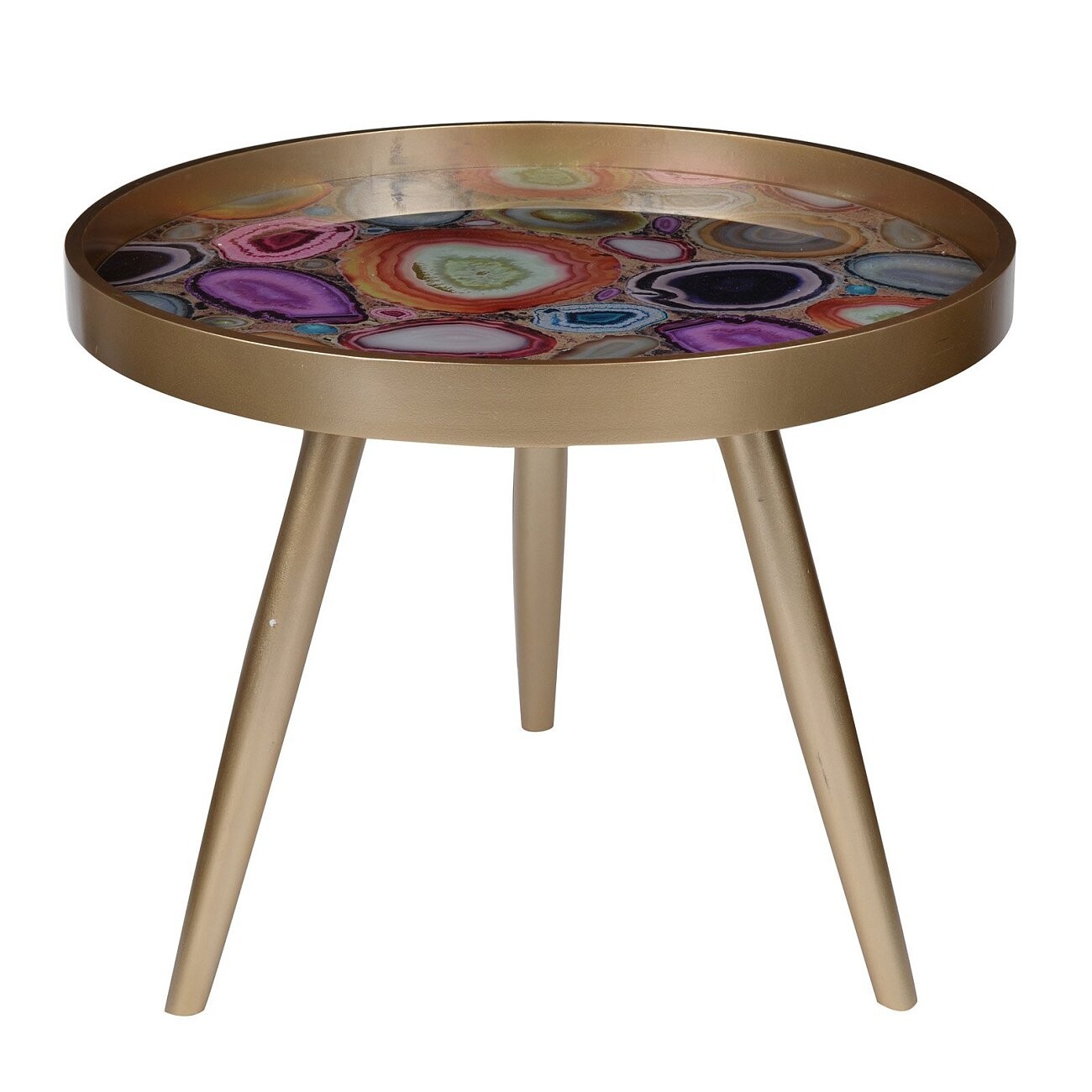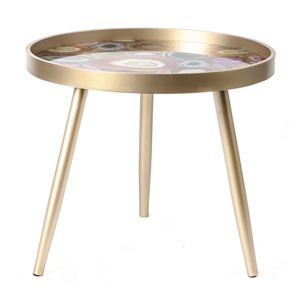 Журнальный столик круглый золото с разноцветной столешницей 60 см Donna
