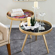 Журнальный столик круглый золото с черной столешницей 60 см Donna