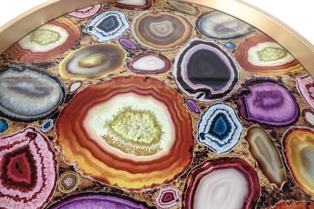 Журнальный столик круглый золото с разноцветной столешницей 60 см Donna - изображение 7
