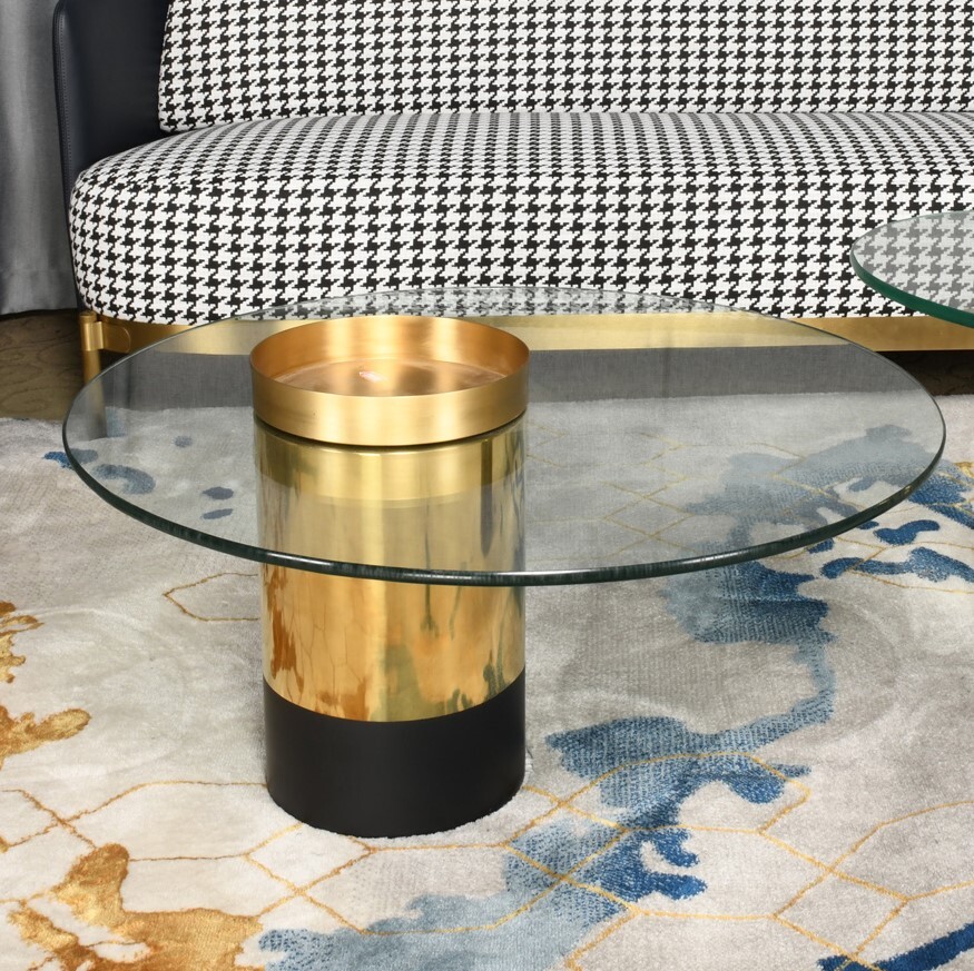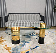 Журнальный столик, хромированная нержавеющая сталь золотого цвета, стеклянная столешница 80 см , способен украсить любой интерьер