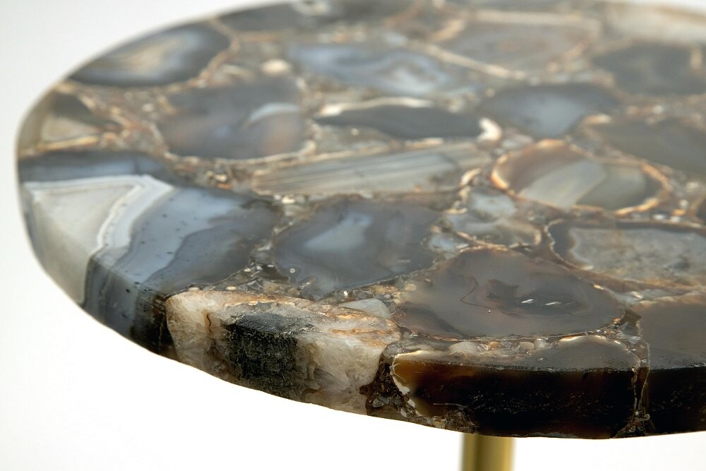 Дизайнерский журнальный столик: Приставной столик круглый из агата 30 см Amina черный