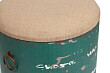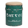 Оригинальный  столик-табурет Barrel Green в виде металлической бочки, окрашенной в зелёный цвет, с полустертыми надписями. Съёмная мягкая крышка табурета покрыта бежевой тканью в виде пены. Покоряет многофункциональность столика-табурета: помимо того, что его можно использовать как журнальный или прикроватный столик, столик дополнен ещё и функцией ящика — внутри него есть место для хранения. Когда к вам придут гости, его можно применить в качестве пуфика. Лаконичное сочетание формы и декора позволяют восхититься дизайнерской находкой. Столик-табурет Barrel Green прекрасно подойдет для помещения в популярном стиле лофт.