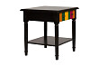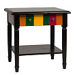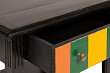 Деревянный журнальный столик Clozet коричневого цвета классической формы, изготовлен «под старину», с надежной фурнитурой, с креативным декором. Фасад выдвижного ящика столика окрашен в разные цвета, внизу столика смонтирована удобная полочка. Дизайнерский столик Clozet отлично дополнит интерьер вашего дома.