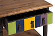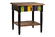 Деревянный журнальный столик Tavolozza коричневого цвета классической формы, изготовлен «под старину», с надежной фурнитурой, с креативным декором. Фасад выдвижного ящика столика окрашен в разные цвета, внизу столика смонтирована удобная полочка. Дизайнерский столик Tavolozza отлично дополнит интерьер вашего дома.