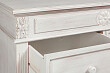 Правило о том, что везде, в том числе и в интерьере, можно обходиться без правил — работает, но вряд ли оно применимо в спальне. Все-таки стандартные вещи — кровать, шкаф — там должны быть, без них пришлось бы сложно. Место в комнате должно быть использовано максимально функционально. Поэтому такой большой комод Lurika поможет разобраться с хранением вещей. Комод выполнен из ели и МДФ, покрашен в белый цвет. Три крупных ящика и два поменьше расположены друг над другом. Удобные ручки и выдвижная система ящиков позволят с лёгкостью открывать их. Комод выглядит чуть потертым в дизайнерских целях для состаривания. Это и декоративный цветок над ящиками добавляет оригинальности. Комод Lurika белый