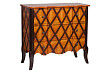 Этот комод сочетает в себе классические резные формы корпуса и современное дизайнерское оформление фасадной поверхности. Светло-коричневый фон выгодно подчеркивает текстуру дерева, а геометрический рисунок в виде тёмно-коричневых косых перекрещивающихся линий придают мебели  изящество и эксклюзивность. Комод Nusteria изготовлен из берёзы, резное основание и высокие изогнутые ножки отлично согласуются с немного состаренным декором. Комод Nusteria разноцветный