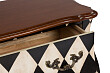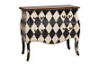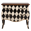 Классическим резным формам этой мебели создатели придали контрастирующую окраску в виде чередующихся ромбиков белого и чёрного цвета. Наряду с изысканным внешним видом, такой подход позволил добиться эксклюзивности дизайна. А вместительные ящики с коваными ручками обеспечивают удобство использования. Комод Palermo разноцветный