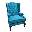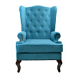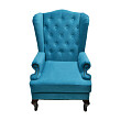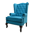 Каминное кресло с ушами (выступами на уровне головы), имеет каркас из дерева, гнутые ножки и мягкие подлокотники. Впервые такую модель сделали в Англии в XVII веке. Пожилых людей своеобразные крылья уберегали от сквозняков, в гостиной они предохраняли от залетания искр из камина. Отсюда появилось название такой модели – каминное кресло в английском стиле. Еще оно именуется на родине «крылатым», «дедушкиным». Каминное кресло с ушами бирюзовое.