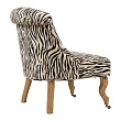 Изысканное кресло Amelie French Country в стиле модерн сделает дизайн интерьера любого дома ярким и изысканным. Шикарная обивка деревянного каркаса с кнопками выполнена из высококачественной ткани серого цвета с рисунком шкуры зебры. Сидение имеет необычайно удобную форму — изогнутость спинки повторяет очертание спины человека, поэтому такое кресло не только украсит ваш дом, но и станет комфортным местом для отдыха. Изящно изогнутые передние ножки оснащены латунными колесиками, изготовлены из прочного натурального дерева насыщенного коричневого цвета.
