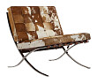 Кресло кожаное с металлическими ножками коричнево-белое Barcelona Chair