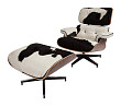 Дизайнерское кресло: Кресло кожаное черно-белое с подставкой для ног Lounge Chair & Ottoman