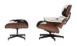 Кресло кожаное черно-белое с подставкой для ног Lounge Chair & Ottoman - изображение 3